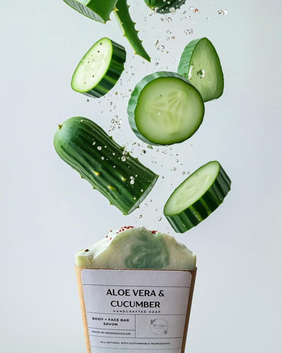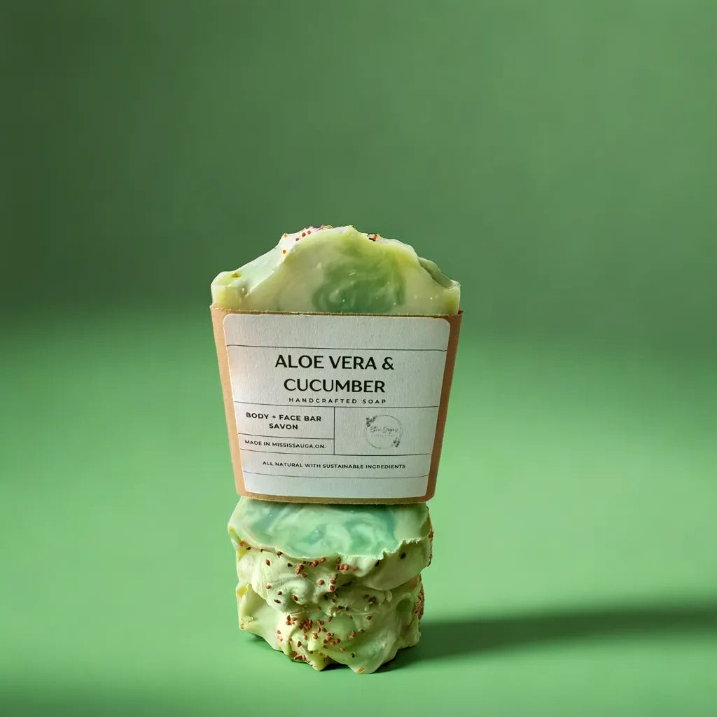 Revitalize your skin with the refreshing blend of Aloe & Cucumber. This handcrafted soap is packed with skin-loving organic oils and nourishing shea butter, designed to gently cleanse and hydrate while leaving your skin feeling soft, smooth, and refreshed. Infused with kaolin clay and silk fibers, this luxurious bar provides a gentle lather and a soothing experience with every use.