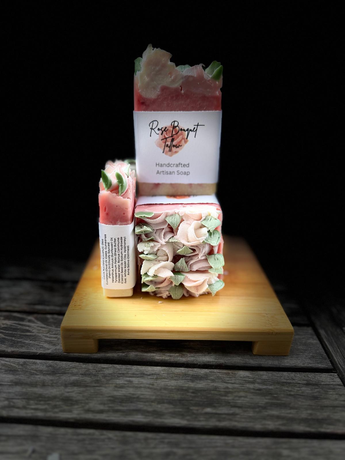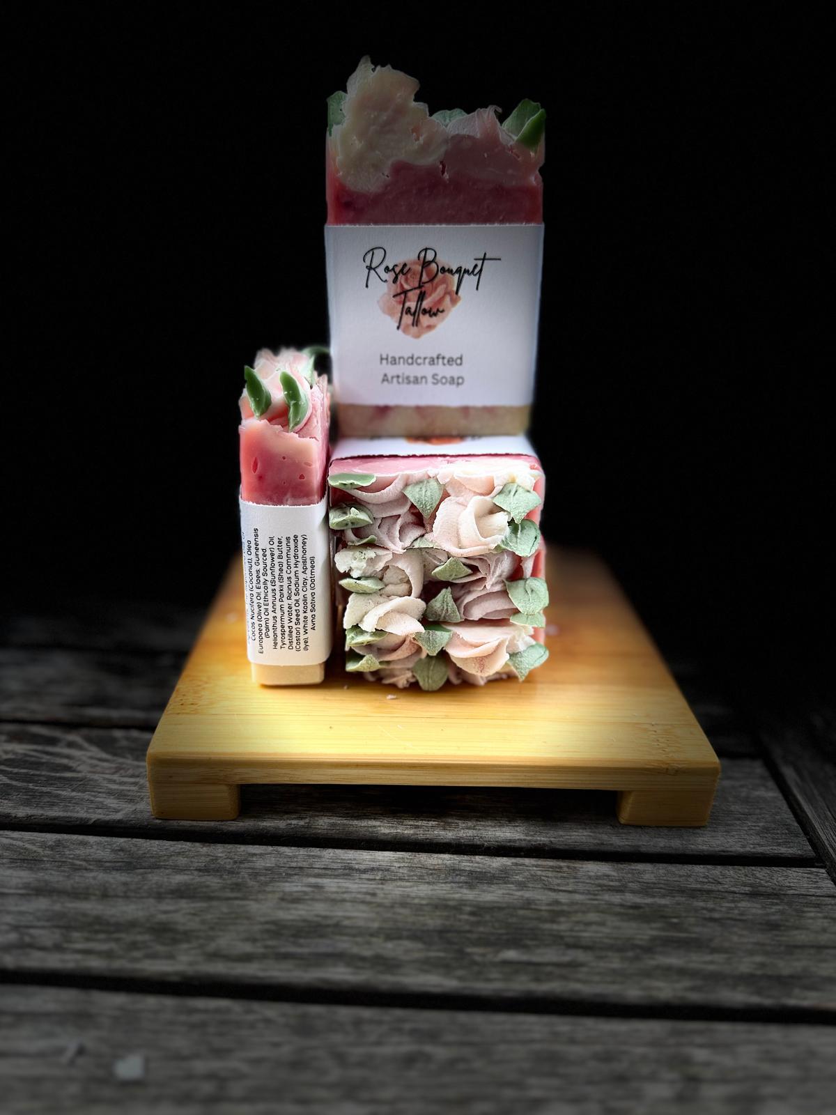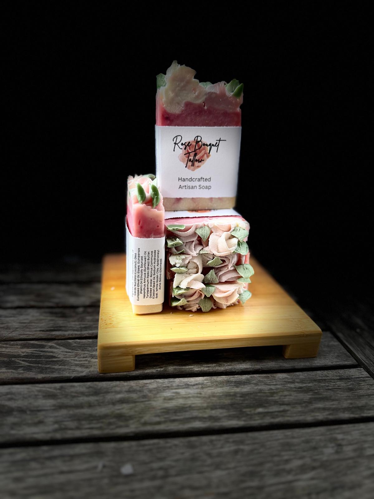 Indulge in the timeless elegance of our Rose Bouquet Soap, a handcrafted bar infused with the delicate essence of rose essential oils. Made with a luxurious blend of organic coconut oil, olive oil, and shea butter, this soap gently cleanses while nourishing your skin, leaving it soft, smooth, and beautifully scented. Enhanced with kaolin clay and silk fibers for an extra touch of luxury, each bar is a true self-care essential.