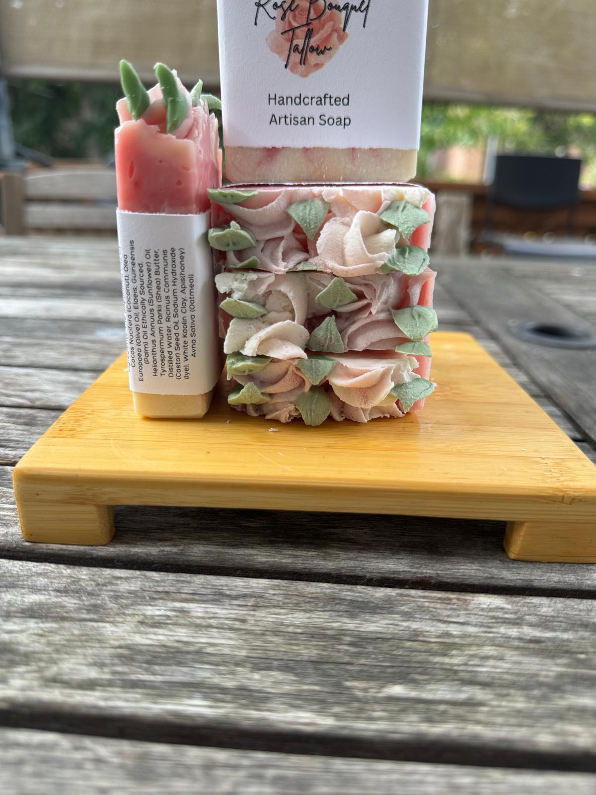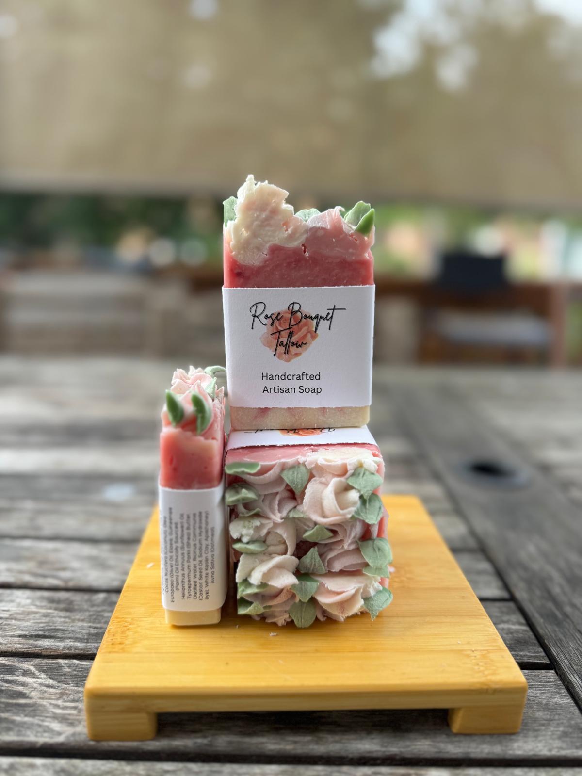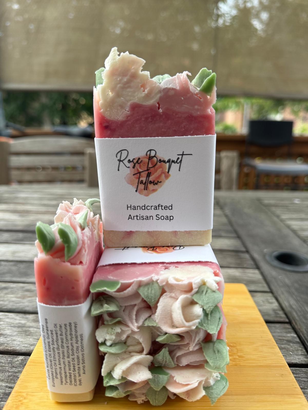 Indulge in the timeless elegance of our Rose Bouquet Soap, a handcrafted bar infused with the delicate essence of rose essential oils. Made with a luxurious blend of organic coconut oil, olive oil, and shea butter, this soap gently cleanses while nourishing your skin, leaving it soft, smooth, and beautifully scented. Enhanced with kaolin clay and silk fibers for an extra touch of luxury, each bar is a true self-care essential.